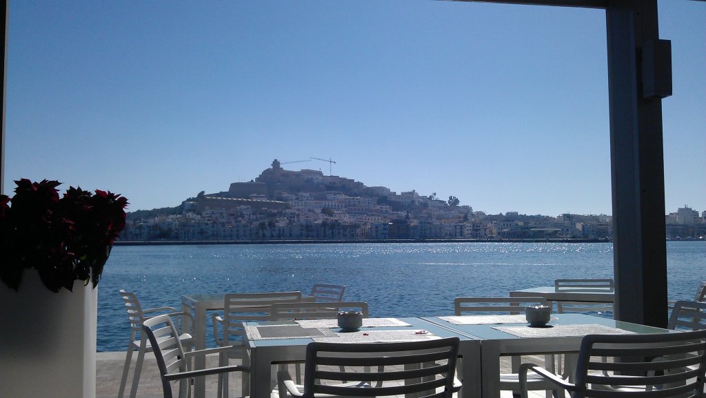 Vista del castillo de Ibiza desde un restaurante del puerto. El día estaba claro y despejado hasta que...