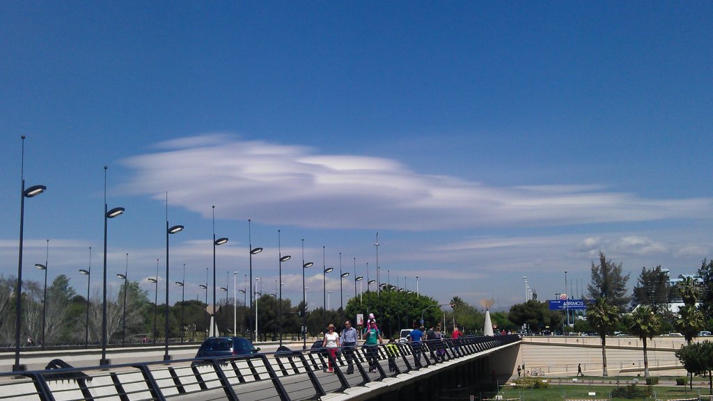 Nubes lenticulares desde el Parque de Cabecera, en Valencia, en una mañana espléndida de primavera.
