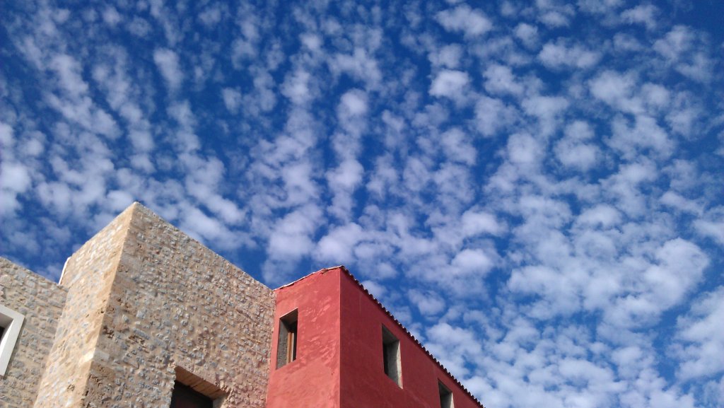 Altocúmulos floccus (nubes 'borreguitos') desde el castillo de Ibiza, en el mes de febrero.
